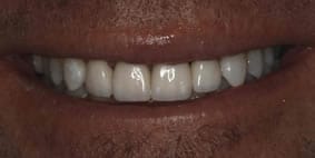 Below is an example of older porcelain veneers that were replaced to correct shade, shape, and color. Notice that the new veneers followed the lower lip line to give a more uniform and youthful appearance. All photos on this page are of actual patients of Dr. Dan Bruce.