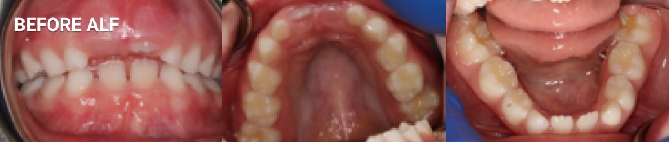 Below is a case successfully treated by Dr. Dan Bruce only using the Myobrace system. This case involved an anterior tongue thrust. The case took 1 year to treat, and we were able to use the habit corrector only due to the lack of considerable crowding, excess overbite, excess underbite or crossbites.