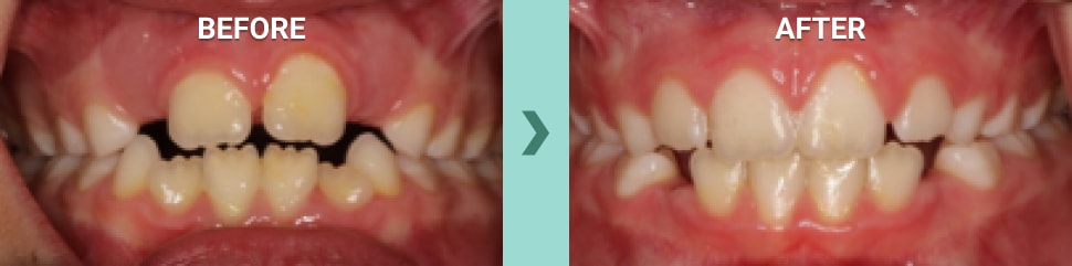 Habit correction only with a habit trainer system such as Myobrace, Vivos Guides, or Healthy Start. This usually involves the use of 1-2 appliances and 6-9 months of treatment. This treatment is best utilized using a myofunctional therapist to aid in exercises to correct tongue posture, but many kids will achieve improved tongue posture with the appliance alone. Treatment involves getting records, selecting the correct appliances, and monitoring usage for 3-6 months. Treatment modifications and referrals may be necessary to achieve success with the habit correction.
